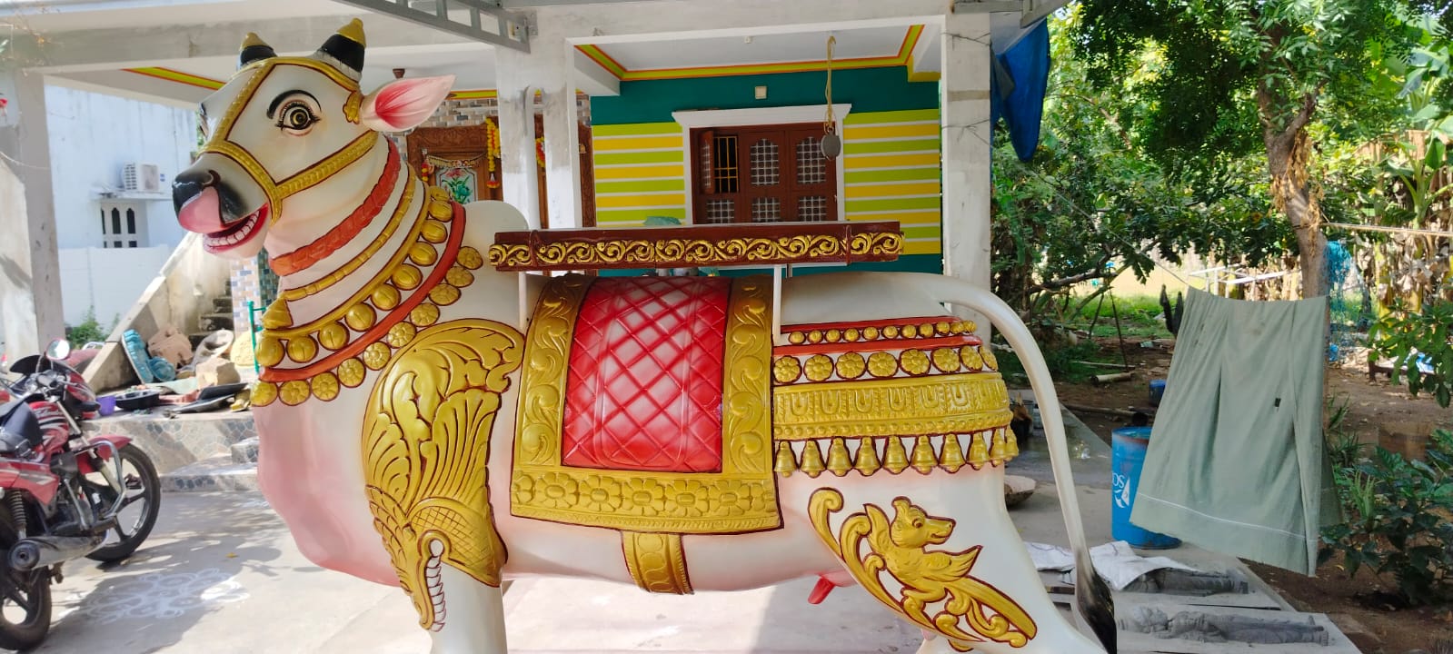 We specialize in crafting temple statues, raja gopurams, vaganams, Arupadai Veedu Mandapams, copper statues, and cement sculptures that embody the spiritual essence of South Indian temple architecture.